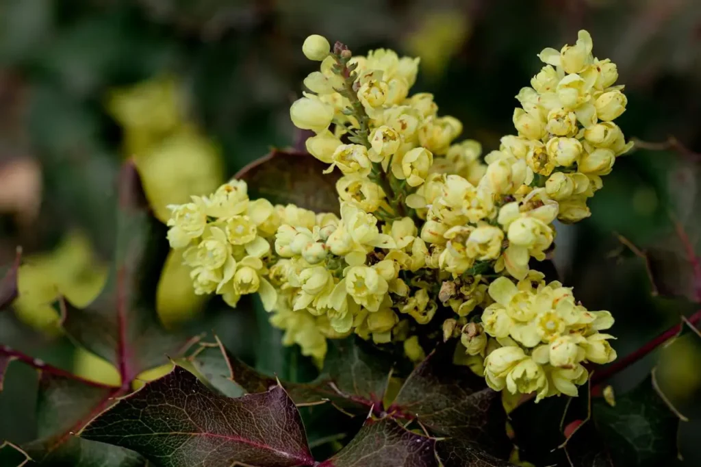 Mahonia pospolita to zimozielony krzew, który wyróżnia się nie tylko ozdobnymi liśćmi, ale także pięknymi, żółtymi kwiatami pojawiającymi się już pod koniec zimy. Kwitnienie mahonii rozpoczyna się zazwyczaj w lutym i trwa aż do kwietnia, dzięki czemu przez długi czas zdobi ogród. Jej kwiaty są drobne, ale bardzo liczne, a ich intensywny zapach przyciąga pierwsze owady zapylające.