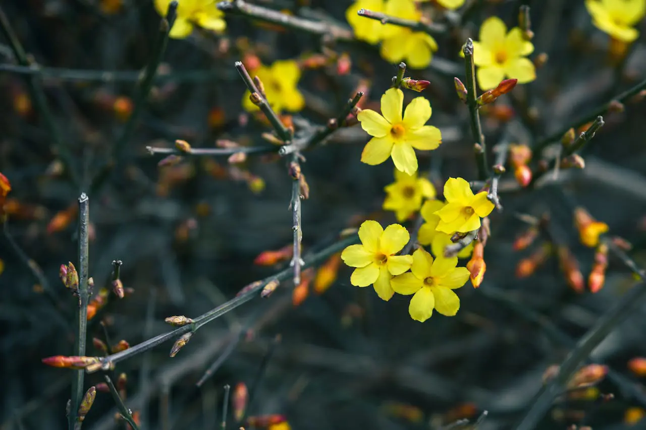 - Jaśmin nagokwiatowy wprowadza do zimowego krajobrazu słońce dzięki swoim drobnym, żółtym kwiatom.